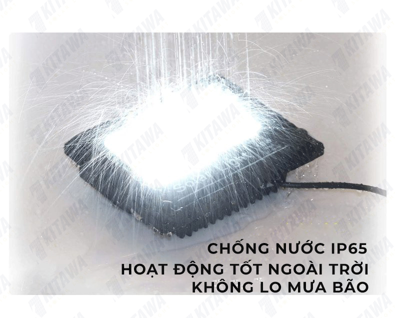 Đèn pha năng lượng mặt trời KITAWA được trang bị chuẩn IP65 có khả năng chống bụi và chống nước vượt trội để bạn yên tâm lắp đặt ngoài trời và sử dụng trong mọi điều kiện thời tiết
