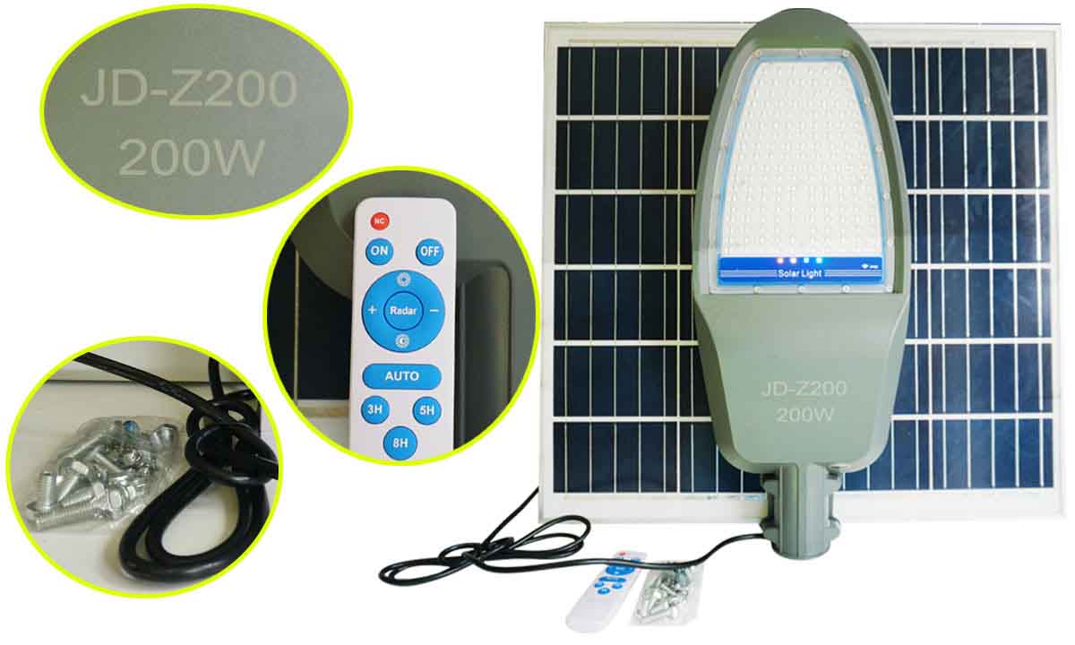 5. Đèn đường năng lượng mặt trời 200w cao cấp JD-Z200 bán với giá bao nhiêu?